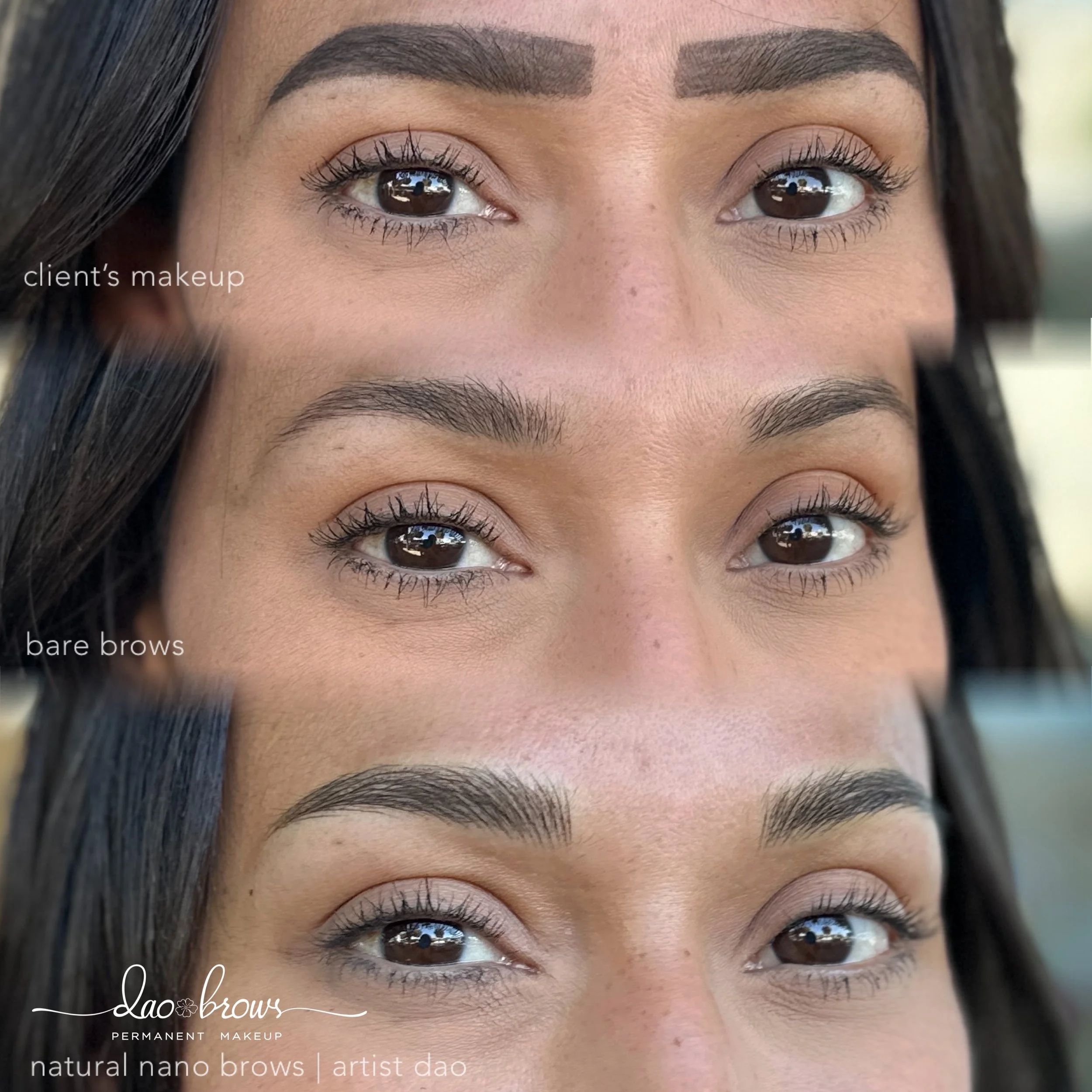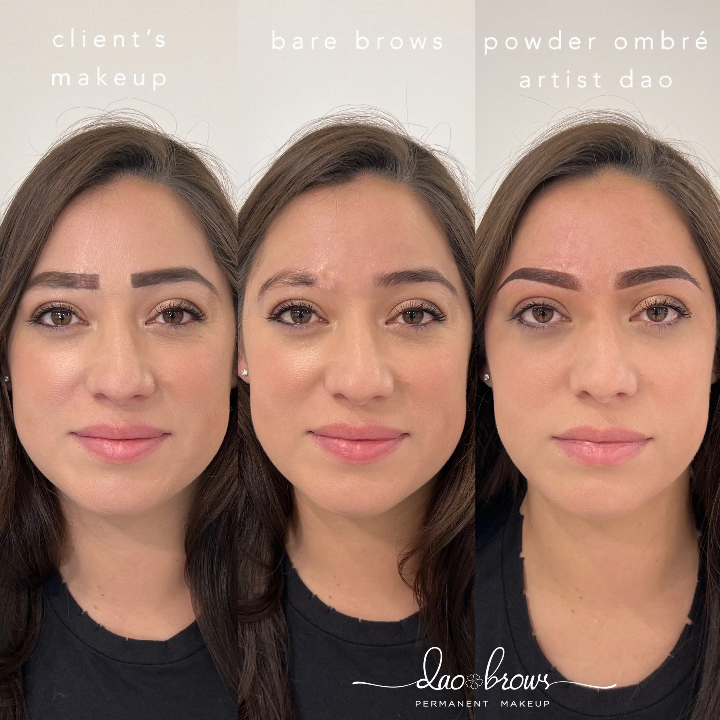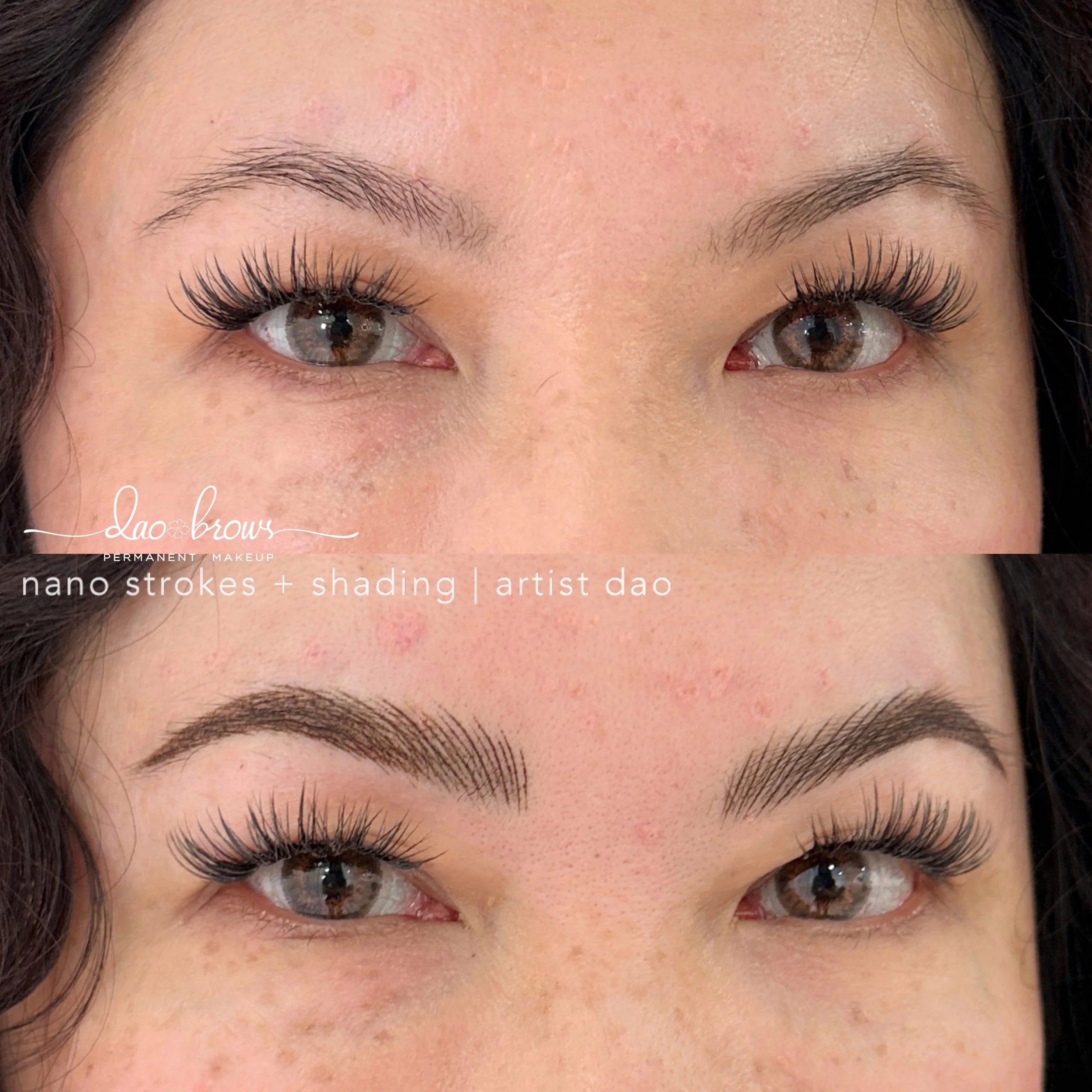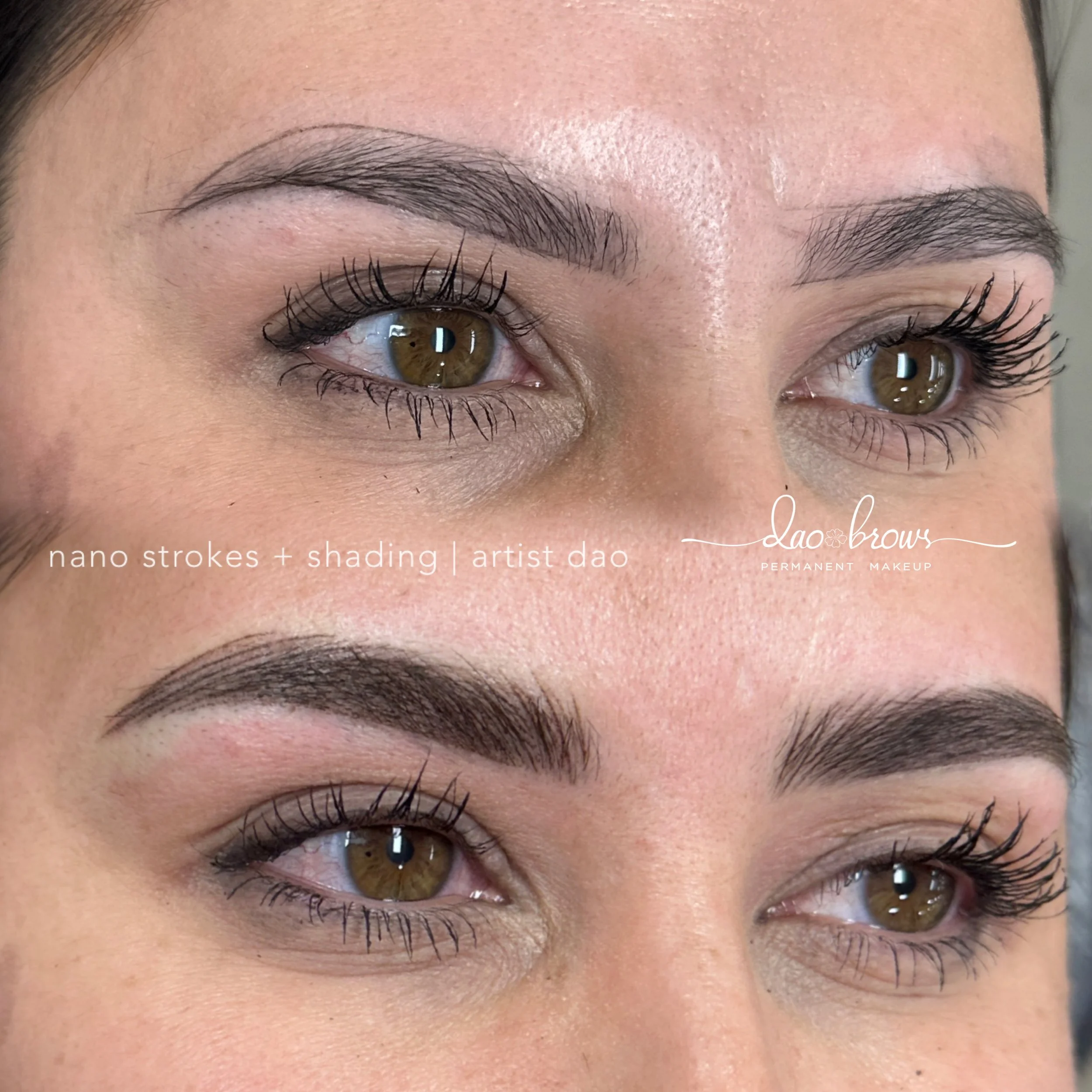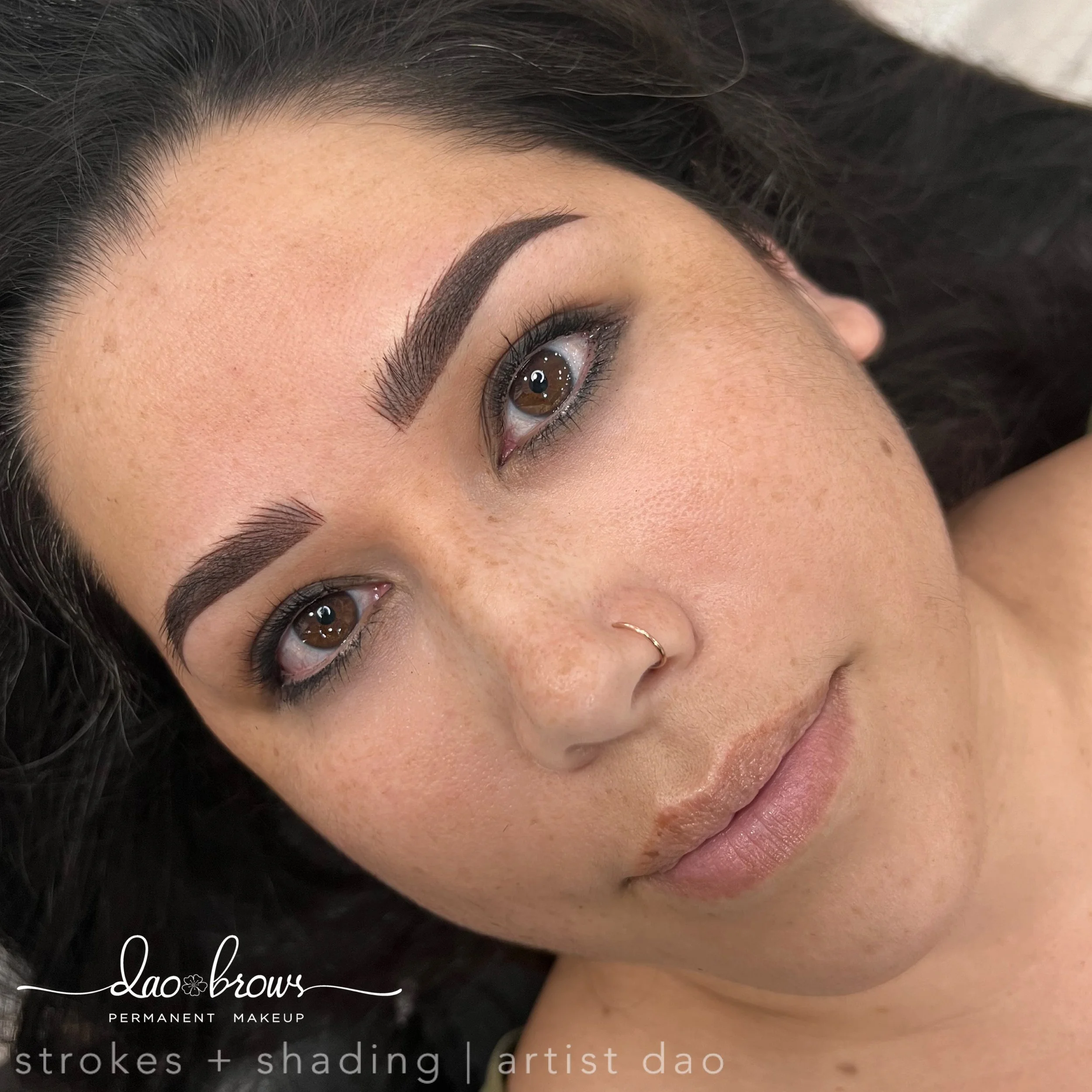 Dao specializes in Powder Ombre, Natural Nano brows, Nano Strokes + Shading, Lip Blush, Eyeliner, Beauty Mark, Color Correction, non-invasive ink removal, and fine line tattoos