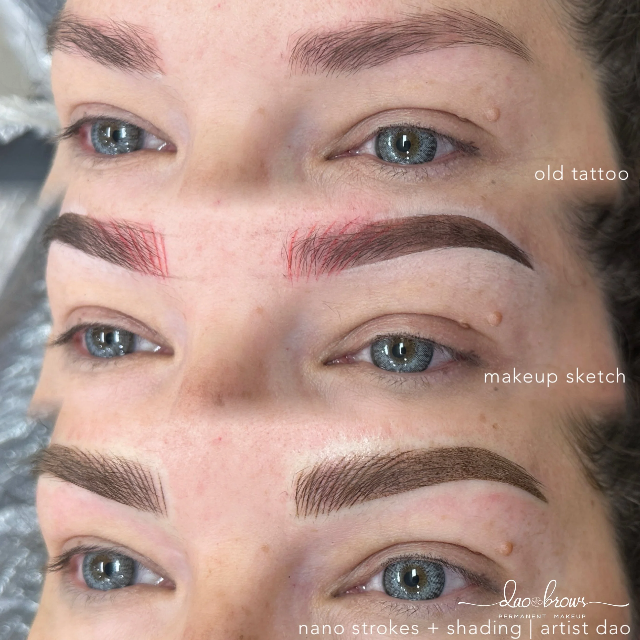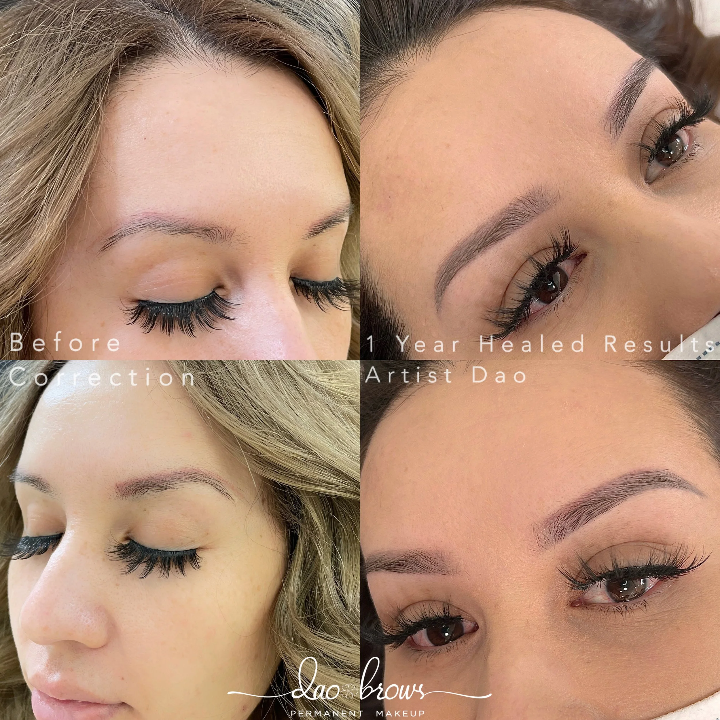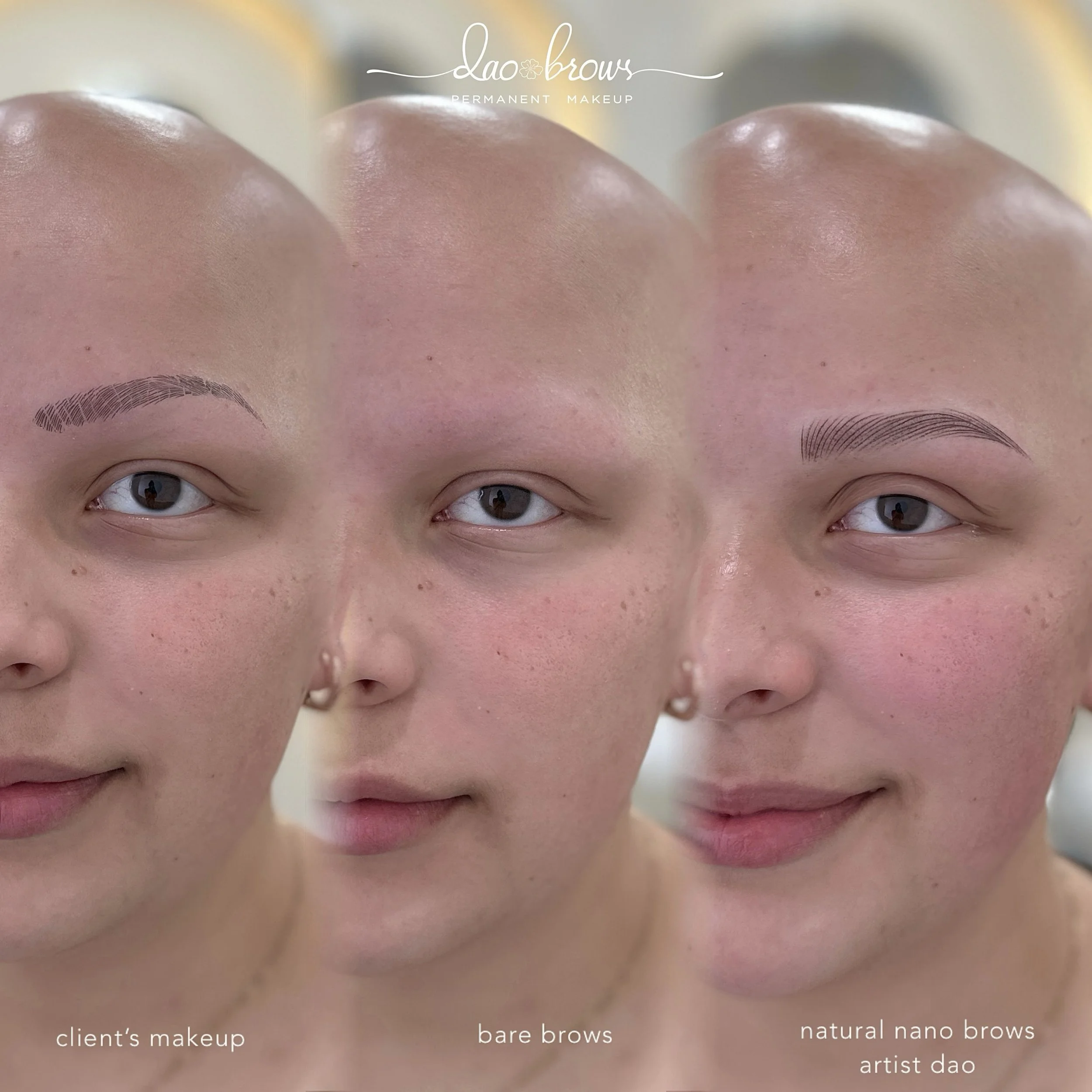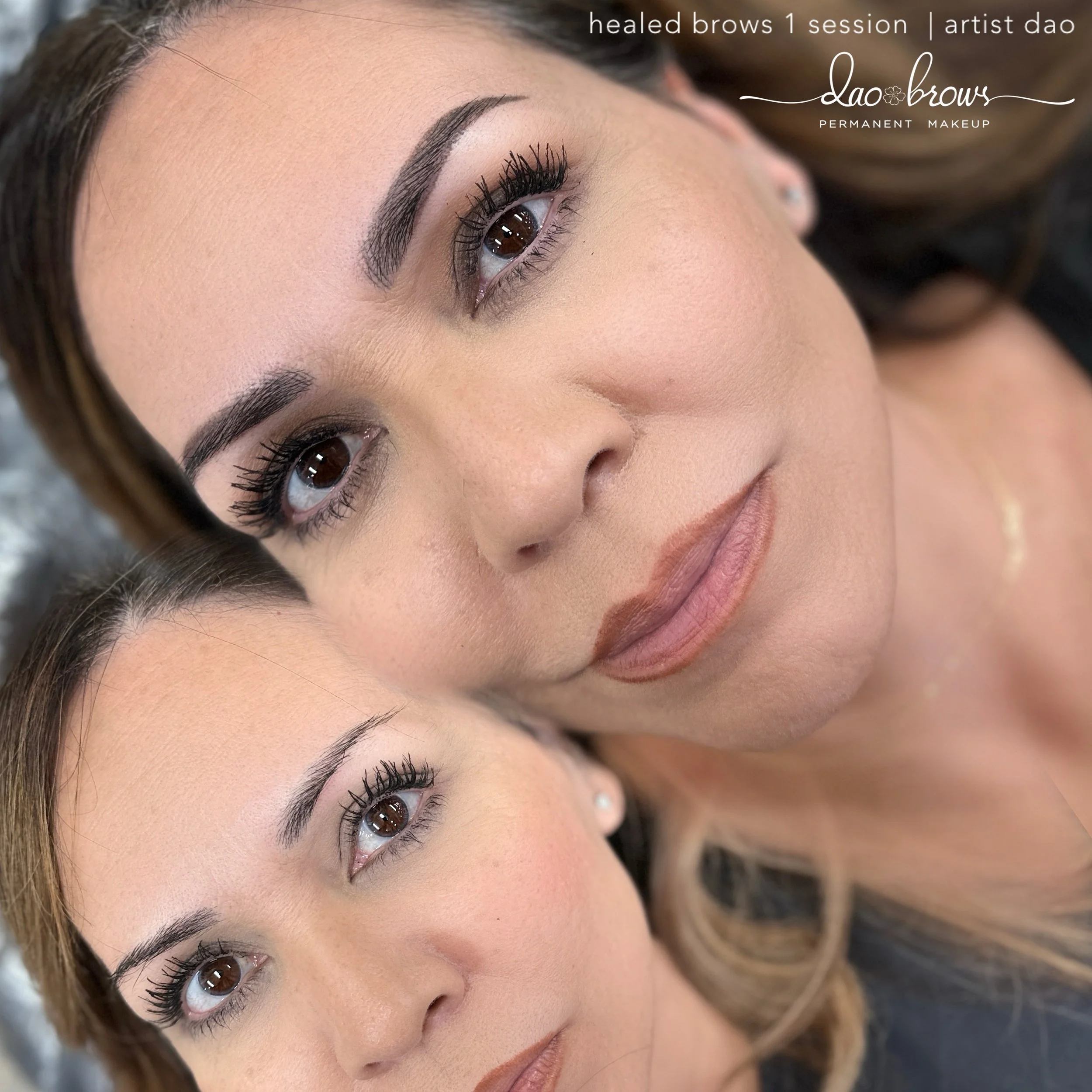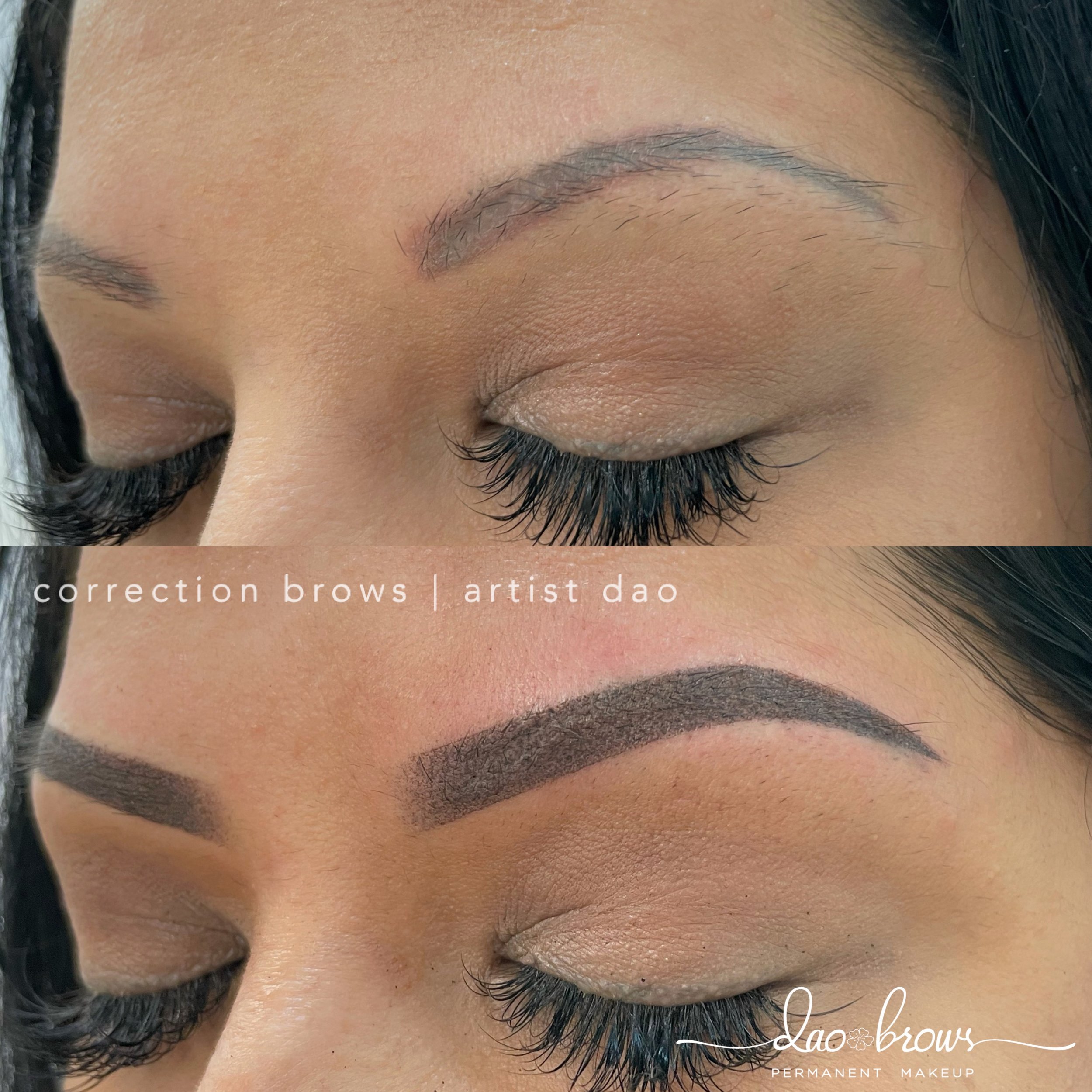 Dao specializes in Powder Ombre, Natural Nano brows, Nano Strokes + Shading, Lip Blush, Eyeliner, Beauty Mark, Color Correction, non-invasive ink removal, and fine line tattoos